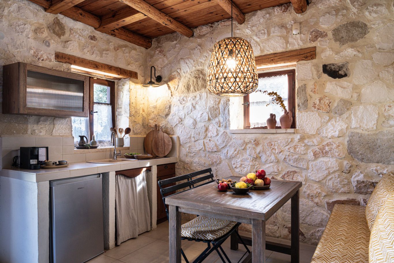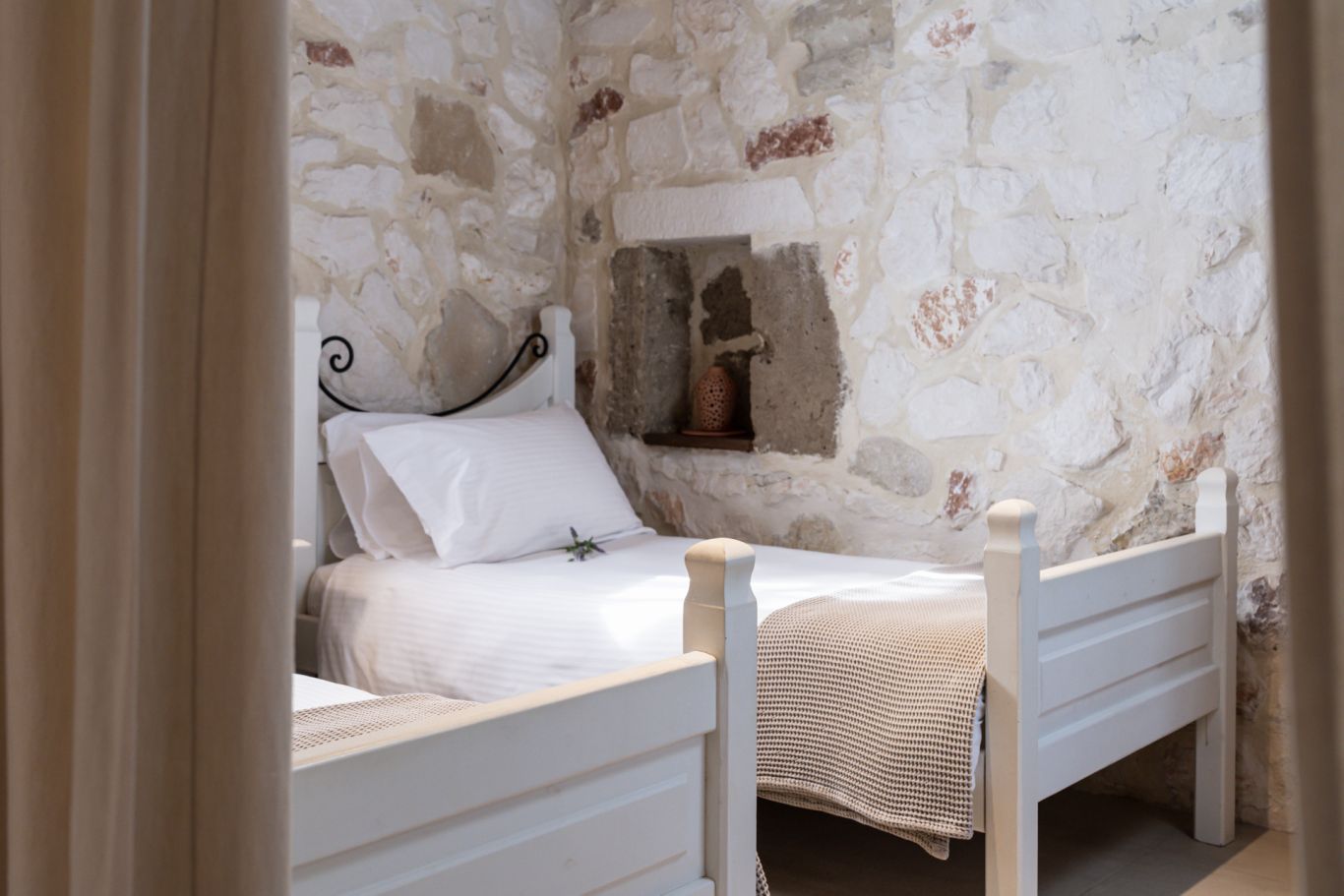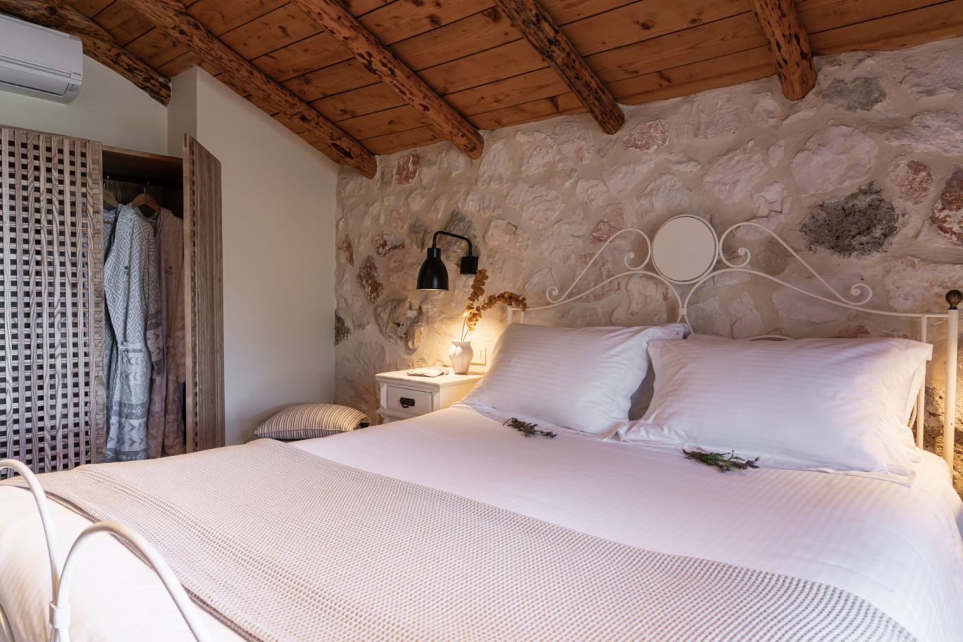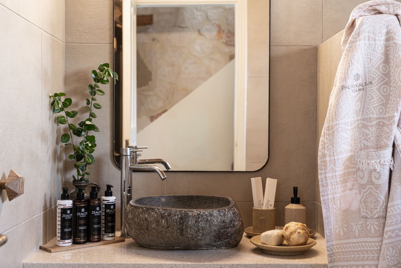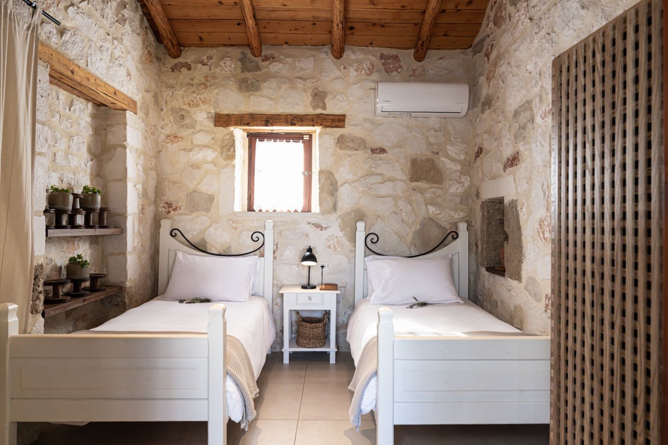 2 bedrooms , King size bed in master bedroom by COCO-MAT for supreme comfort and relaxation. and twin beds or double bed option in second bedroom, open plan living/dining area, equipped kitchen,1 bathroom with shower, Furnished private veranda. The luxury apartments have interiors, with bright open spaces, modern comforts and amenities. Beautifully decorated in earthy tones, with natural stone and wood, creating a sense of authentic Zante hospitality. Just under your private veranda, enjoy the garden, take long, relaxing walks, relax and plan your next activities on the island.